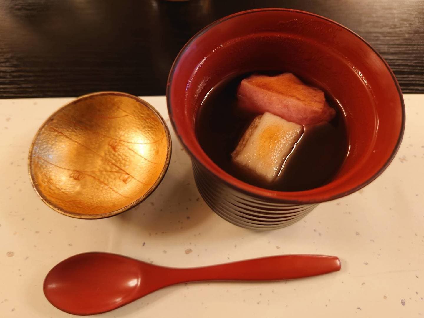 紅白のお餅入りお汁粉も付きました